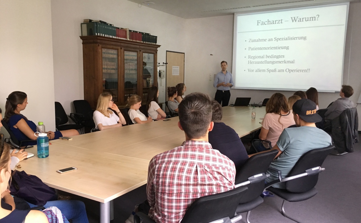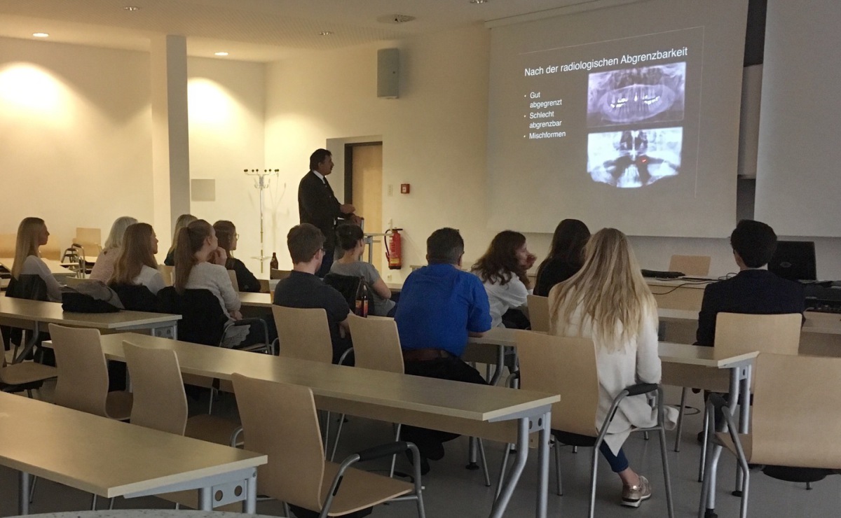 Zum Thema "Assistenzzeit und Weiterbildung zum Fachzahnarzt für Oralchirurgie" fand am Donnerstag, 1. Juni 2017, das erste Almuni-Gespräch statt. Zu Gast war Alumnus Christopher Schmid, der vor aktuell Studierenden über Erfahrungen aus seiner Assistenzzeit berichtete und zahlreiche Einblicke über seine aktuelle Tätigkeit als Weiterbildungsassistent für Oralchirurgie gewährte.